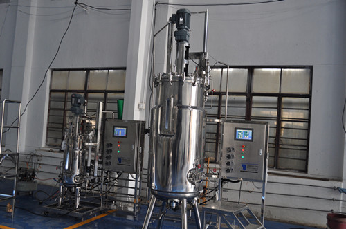 罐體功能: 約翰克蘭機(jī)械密封、進(jìn)氣滅菌過濾器、排氣冷凝器、含空氣分布器的進(jìn)氣系統(tǒng)、火焰接種口(也是投料口與清洗口)、放料口、取樣口、補(bǔ)料口;自動(dòng)控制參數(shù)的五支電極分別是:PH電極、DO電極、消泡電極、溫度電極口;四臺(tái)蠕動(dòng)泵自動(dòng)控制分別補(bǔ)酸/堿/泡敵/培養(yǎng)劑;