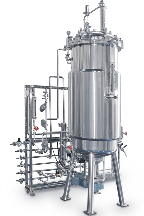 罐體:主體材質為全不銹鋼316L罐體,罐內無死角;帶發酵罐專用取樣、放料閥,移種管道。采用大視角罐內液位觀察視鏡,12V安全視燈,帶有溫度、PH、 DO、消泡、液位接口、接種口、補料口 、及多個備用口,所有焊縫堅固整齊美觀。電機在底部,降低了設備的整體高度