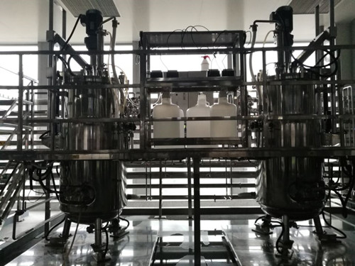 罐體功能: 約翰克蘭機械密封、進氣滅菌過濾器、排氣冷凝器、含空氣分布器的進氣系統、火焰接種口(也是投料口與清洗口)、放料口、取樣口、補料口;自動控制參數的五支電極分別是:PH電極、DO電極、消泡電極、溫度電極口;每罐四臺蠕動泵自動控制分別補酸/堿/泡敵/培養劑;